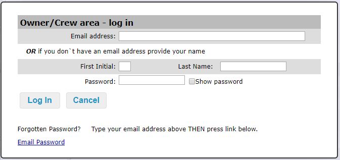 Log in. Use your name rather than an email address as this may have changed since you last accessed your boat details.